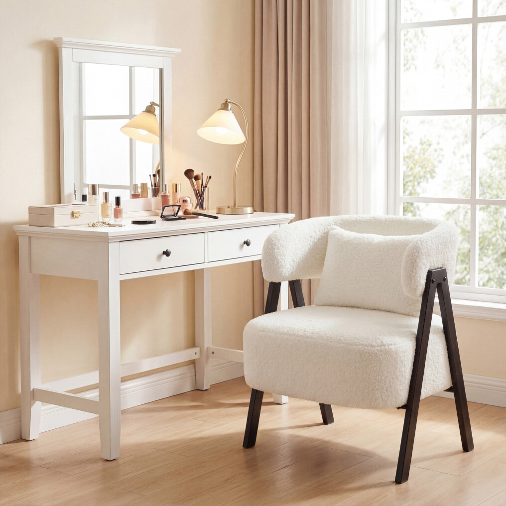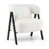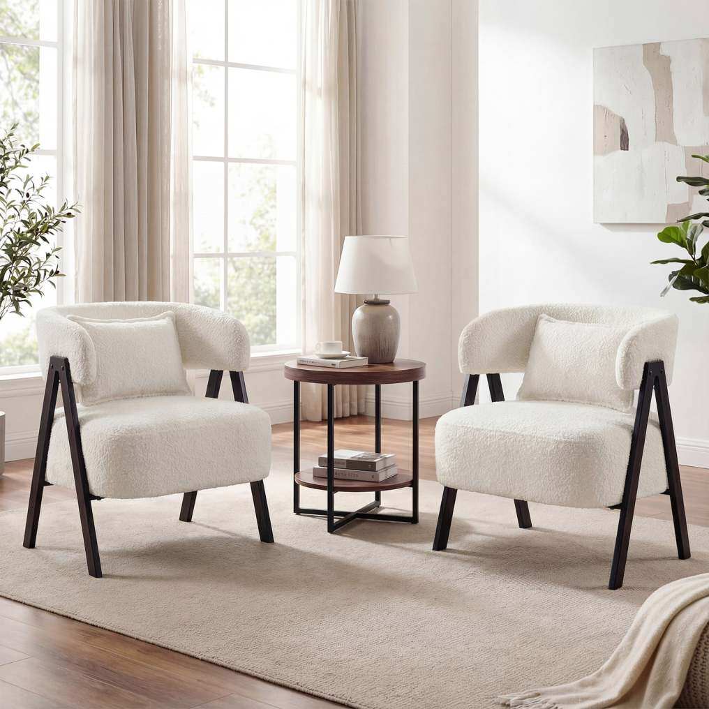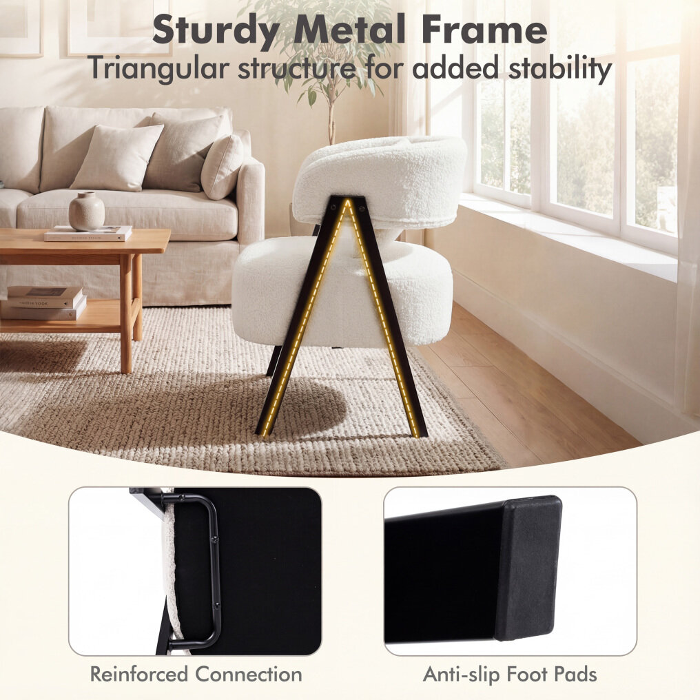 Upholstered in soft faux rabbit fur, this armchair adds a touch of warmth and texture to any room. Its curved back design supports a natural sitting posture, making it an inviting spot for reading, relaxing, or unwinding after a busy day. The thick sponge padded seat and included lumbar pillow contribute to prolonged comfort during use. Constructed with sturdy metal legs arranged in a triangular structure, the reading chair ensures stability and durability. It also includes anti-slip foot pads to protect your floors and maintain chair steadiness on different surfaces.