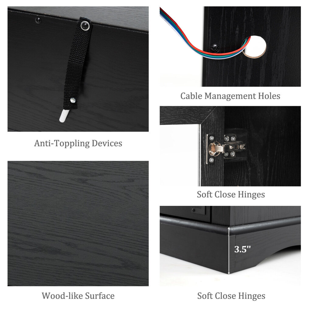 ● Sturdy Construction: Built to last, this entertainment center features a 3.5" thickened base and anti-toppling devices for added stability and safety. This robust construction ensures that this living room furniture remains secure and sturdy. Moreover, the countertop holds up to 110 lbs for your TVs up to 50 inches.