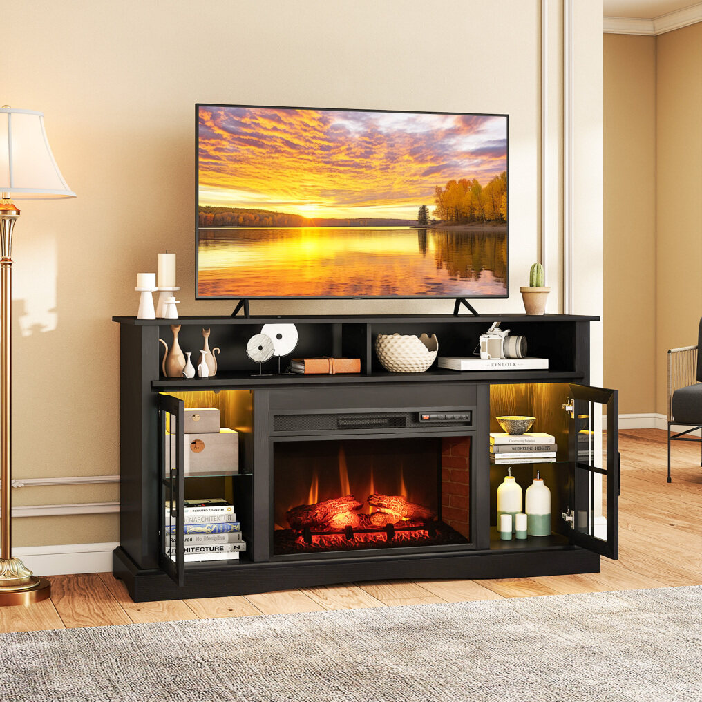 ● Stunning Visuals and Ambiance: This 2-in-1 fireplace TV stand features realistic 3D flame effects with 3-level brightness settings, allowing you to adjust the ambiance. Plus, the RGB LED strip lights tailor your viewing experience with flash and speed adjustments, opt from 10 brightness levels or set the mood with 4 different rhythm modes.