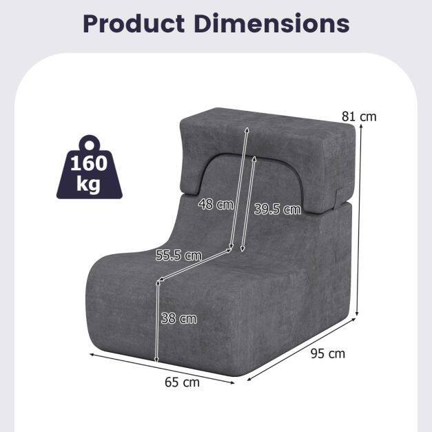 ● Safe and Stable Construction: The integrated sponge design ensures no rigid structures for safe use. Plus, the wide base and anti-slip bottom keep the sofa chair steady and stable. It bears a weight of 350 lbs.