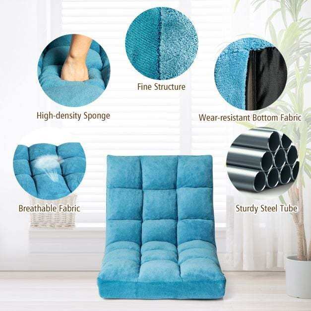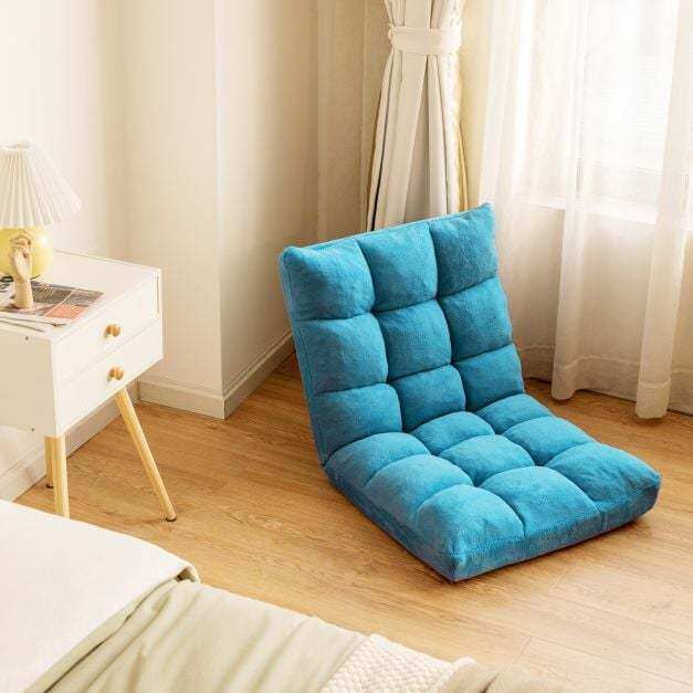 Create a cozy spot in your home with our floor chair! Covered with skin-friendly coral velvet and padded with highly elastic sponge, this floor chair offers you a wonderful sitting experience, just like lying in the soft sky. You can also adjust the backrest to 14 different positions for reading books, watching TV, playing games, etc. The sturdy metal frame and 90kg load capacity will not let you worry about deformation or tipping over. When not in use, simply lay flat on the floor. The compact size fits perfectly in the limited space under your sofa or bed.