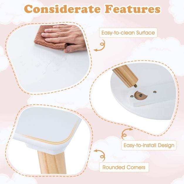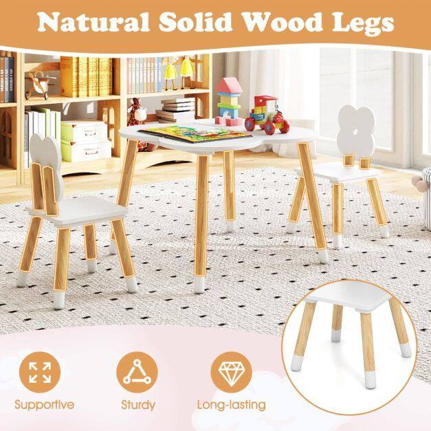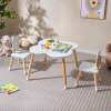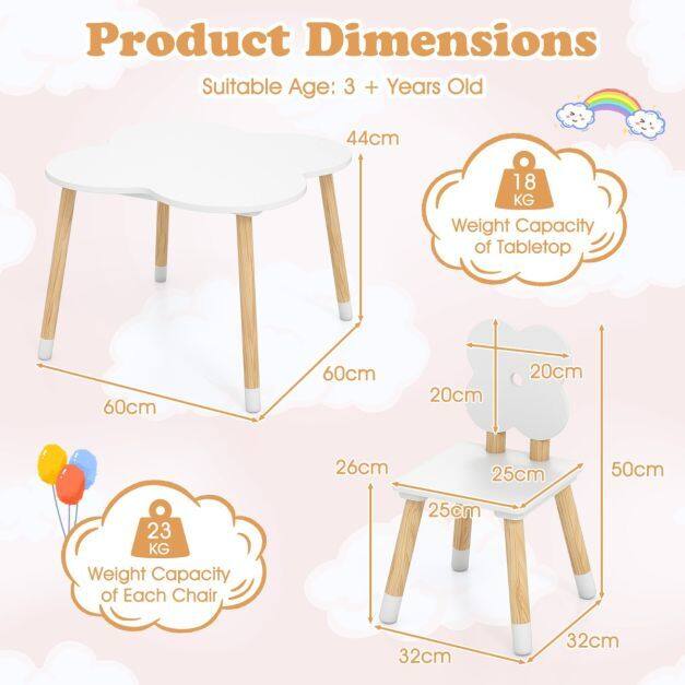 ● Safe Use and Sturdy Structure: The smooth rounded corners ensure safe touch. It is ASTM compliant for higher security. Supported by solid pine wood legs, the table and chairs remain steady and stable on the ground.