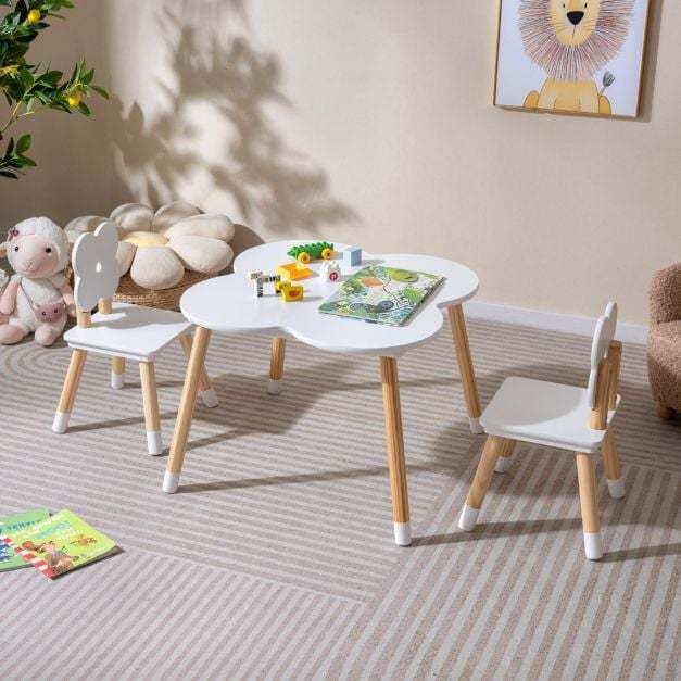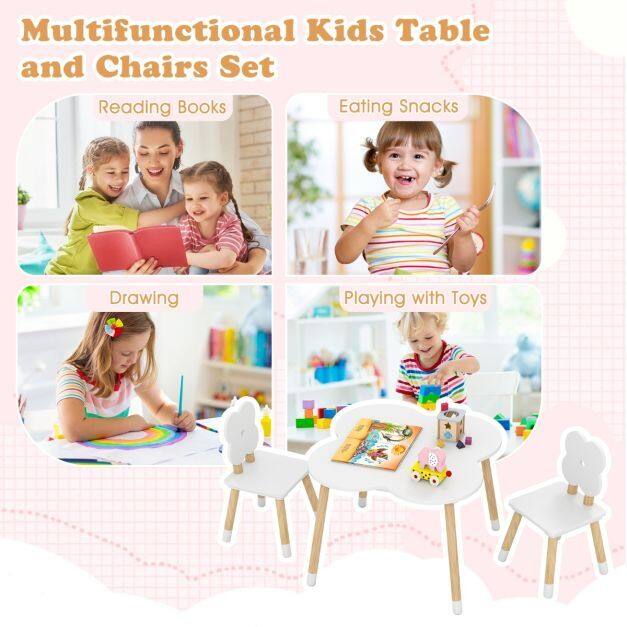 ● Cute Flower Appearance: The kids' table set features 1 flower-shaped tabletop and 2 flower-shaped backrests of the chairs, which brightens up your playroom or nursery. The lovely quatrefoil flower appearance encourages creativity and offers a more enjoyable experience for children ages 3 and up.