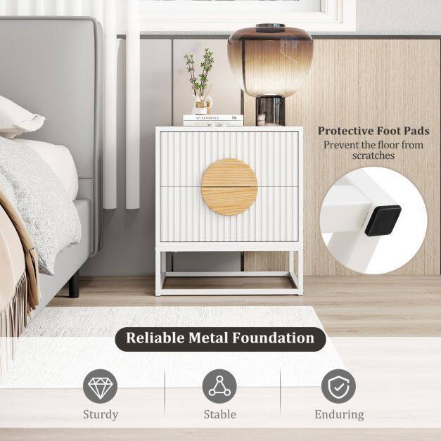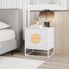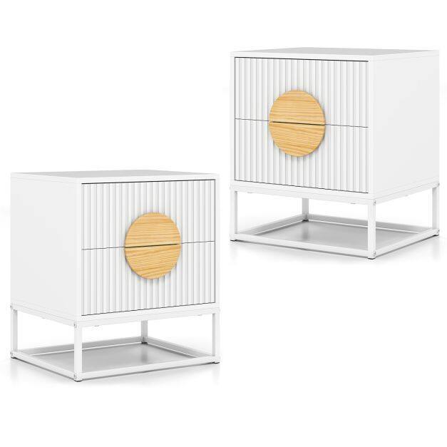 Fluted Nightstand Modern Mid Century Side Table Set of 2-White