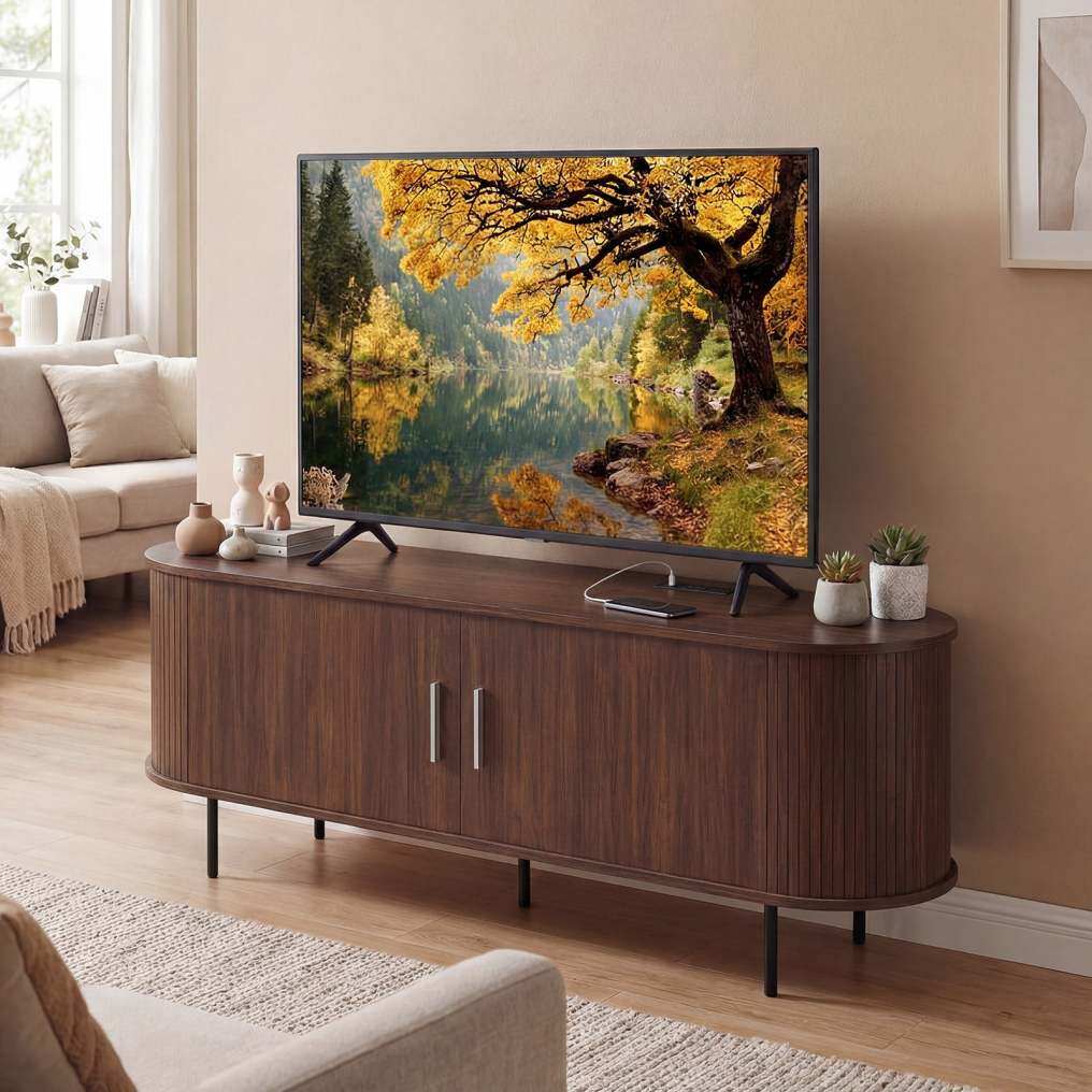 ● Suitable for TVs up to 60": This stylish fluted TV stand perfectly accommodates televisions up to 60 inches. Its wide tabletop provides ample space for your electronic devices or decorative items, creating a neat and organized viewing area in your living room or bedroom.