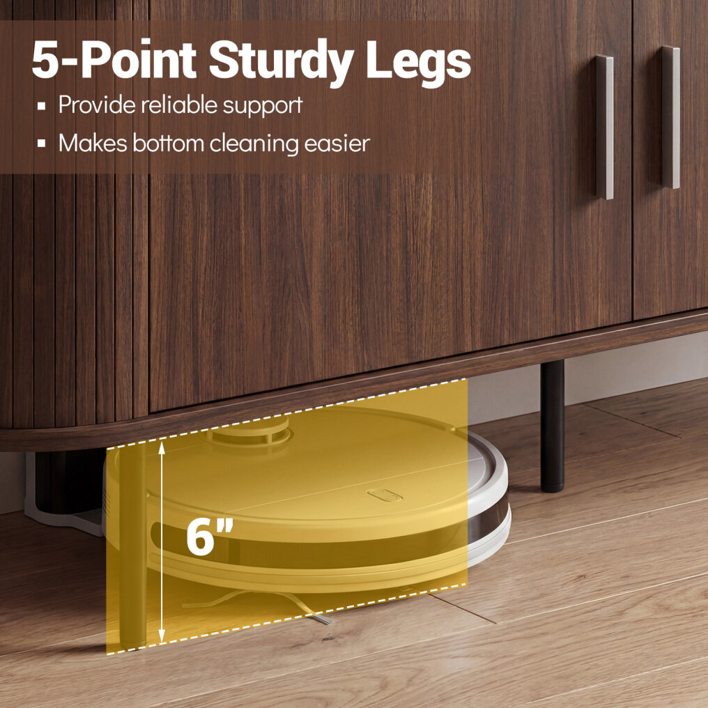 ● 5-Point Elevated & Sturdy Legs: Supported by 5 solid metal legs, this media console offers a stable foundation for your media essentials. Meanwhile, the elevated 6" ground clearance under the bottom shelf not only enhances the durability of the entertainment center but also simplifies cleaning tasks.