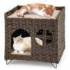 Wide Application: Not limited to just a sleeping haven for cats, the wicker cat house can be used as a side table or nightstand in your living room, bedroom, or entryway. The top tier can hold decorative items or essential belongings.