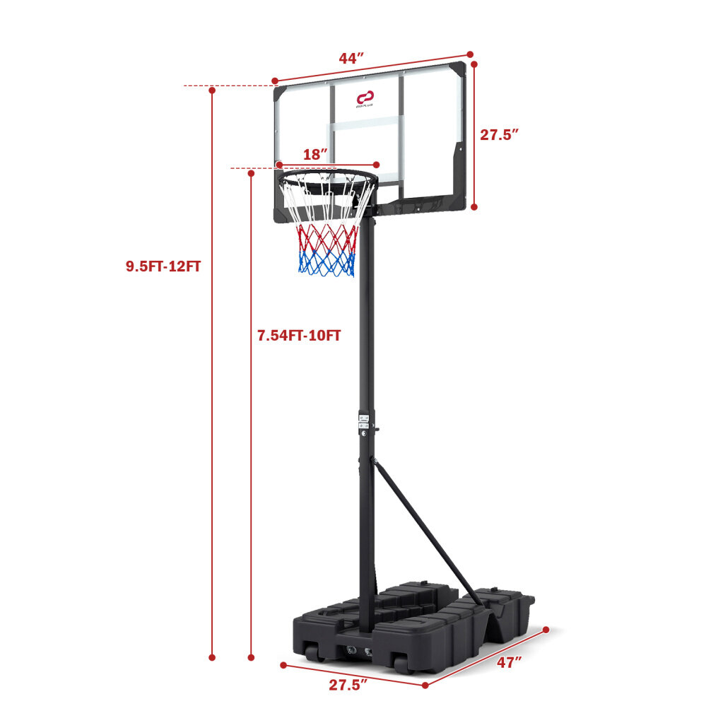 ● Premium Backboard & Hoop: The reinforced backboard is crafted from shatterproof PC material, along with a shock-proof design for added durability. Besides, with a stable hoop and tear-resistant nylon net, this portable basketball hoop set delivers a professional playing experience for enthusiasts of all levels.