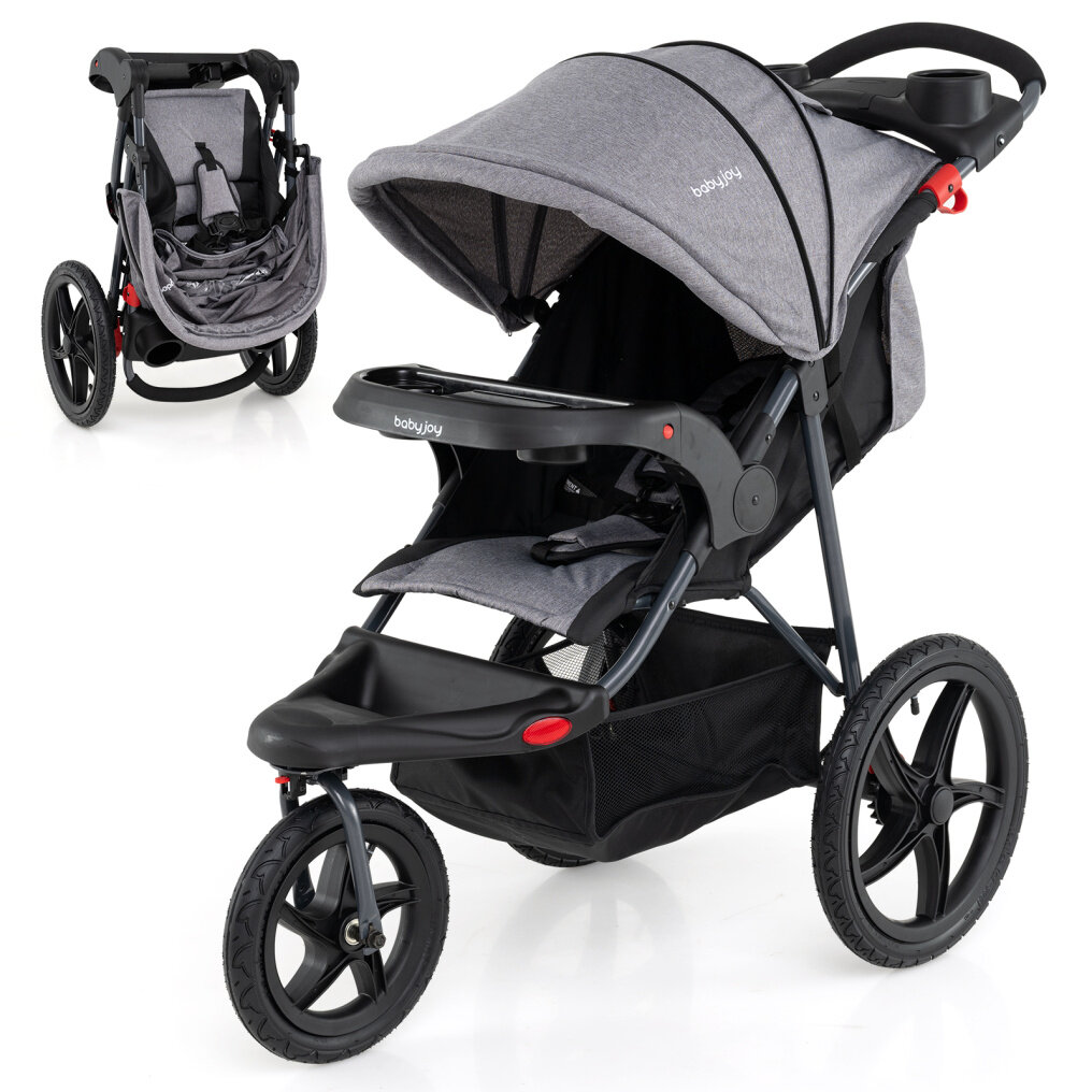 ● Friendly to Parents and Babies: Designed with both parent and child in mind, the jogger stroller includes dual trays, cup holders, a large storage bag, and a cushioned sponge handlebar. These thoughtful additions offer convenience and ease during your strolling adventures.
