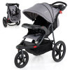 ● Big Air-Filled Rubber Tires: The foldable jogger boasts air-filled rubber tires that are not only wear-resistant and anti-skid, but also shock-absorbent, making every ride smooth and enjoyable for your little one. With a simple push on the trigger, the front wheel can go straight or rotate 360° for various needs.