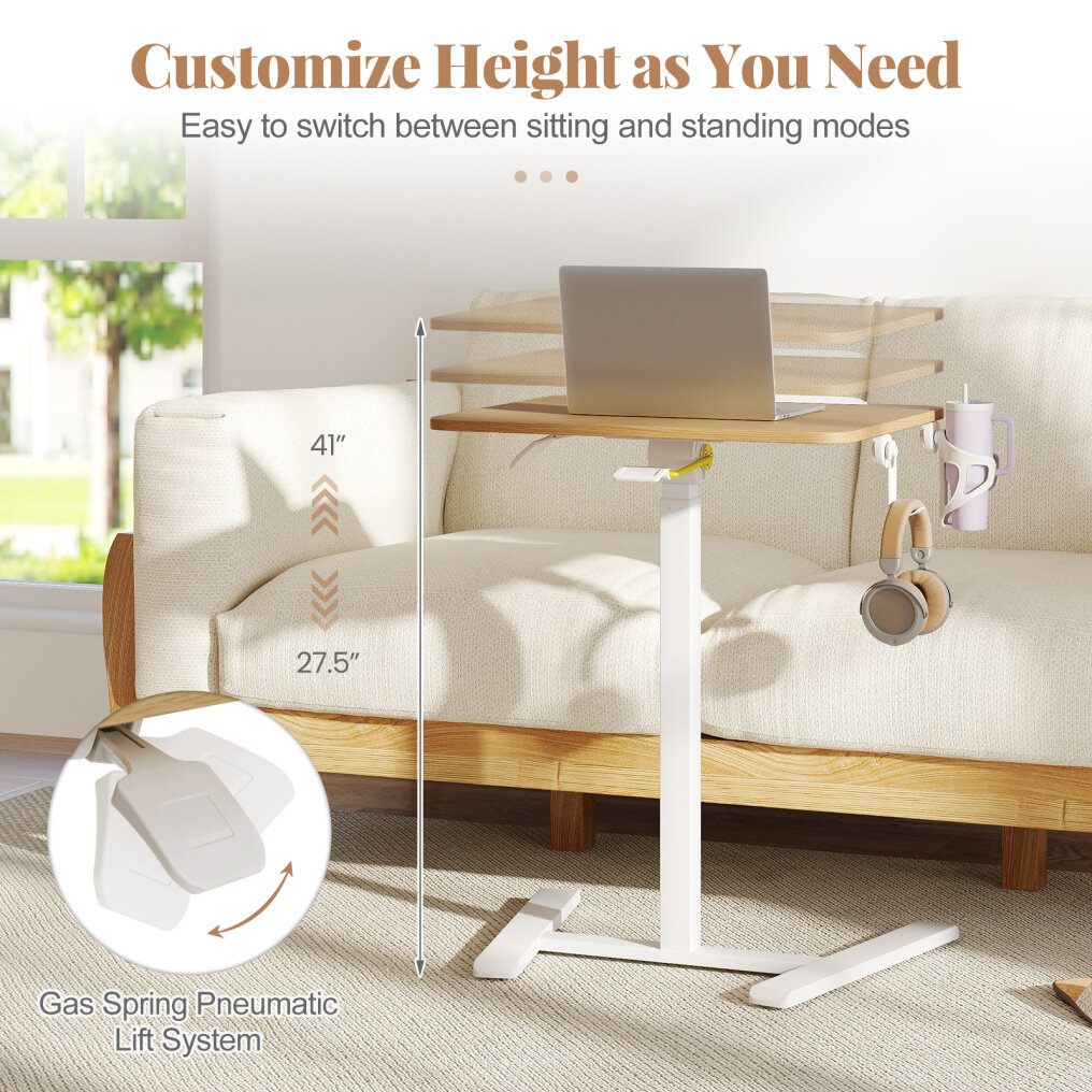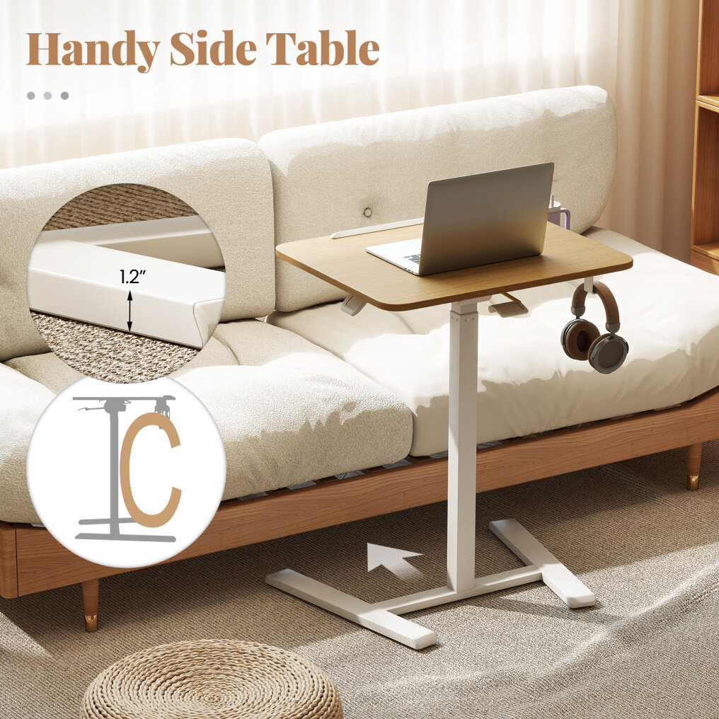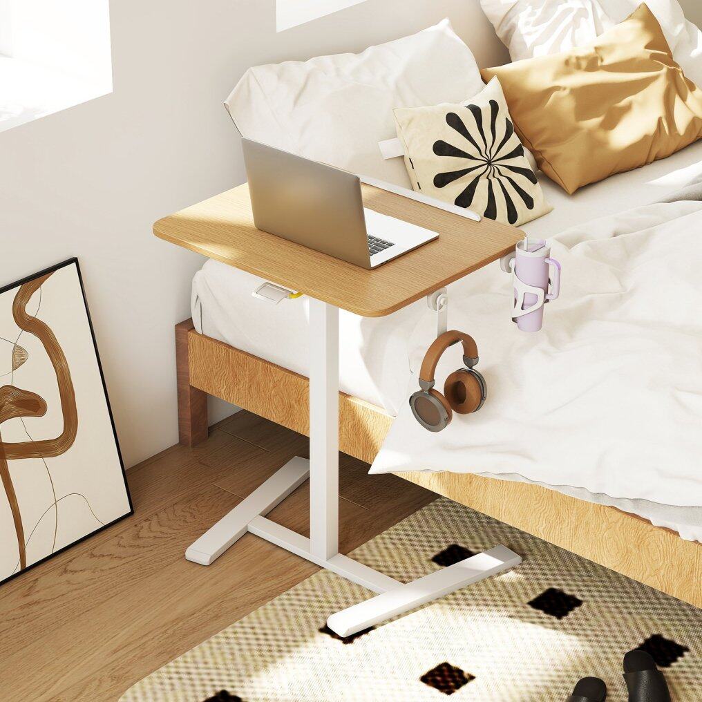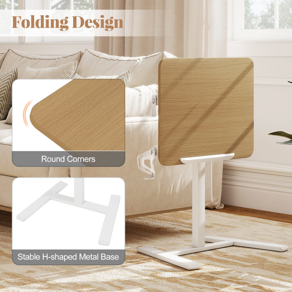 Portable and Foldable Design: Equipped with 4 hidden wheels, the height adjustable desk offers convenience to relocate without hassle. When not in use, this rolling laptop desk folds easily for storage, maximizing space efficiency.