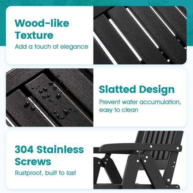 All-Weather Durability: Crafted from premium HDPE material and equipped with 304 stainless screws, this outdoor chair withstands all weather conditions. It resists sun damage and fading, prevents cracking, ensuring long-term outdoor use.