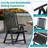 Comfy and Breathable Sitting Experience: The plastic patio chair includes a curved backrest and wide armrests, complete with a slatted seats that promote ventilation, providing ergonomic support and relaxation for extended periods.