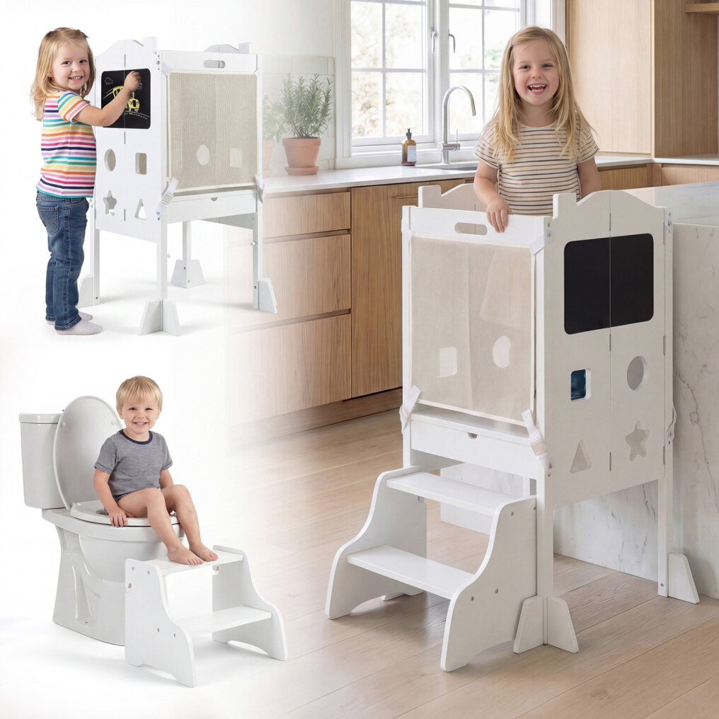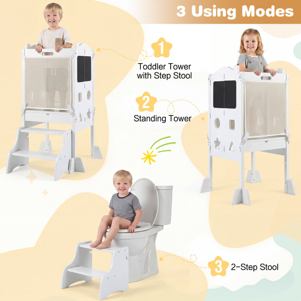 ● 3-in-1 Multifunctional Design: The step stool for toddlers features 3 using modes: toddler tower with step stool, standing tower, and 2-step stool. It will be a nice choice to help your child participate in housework, reach for items from heights, wash hands, or climb into bed independently.