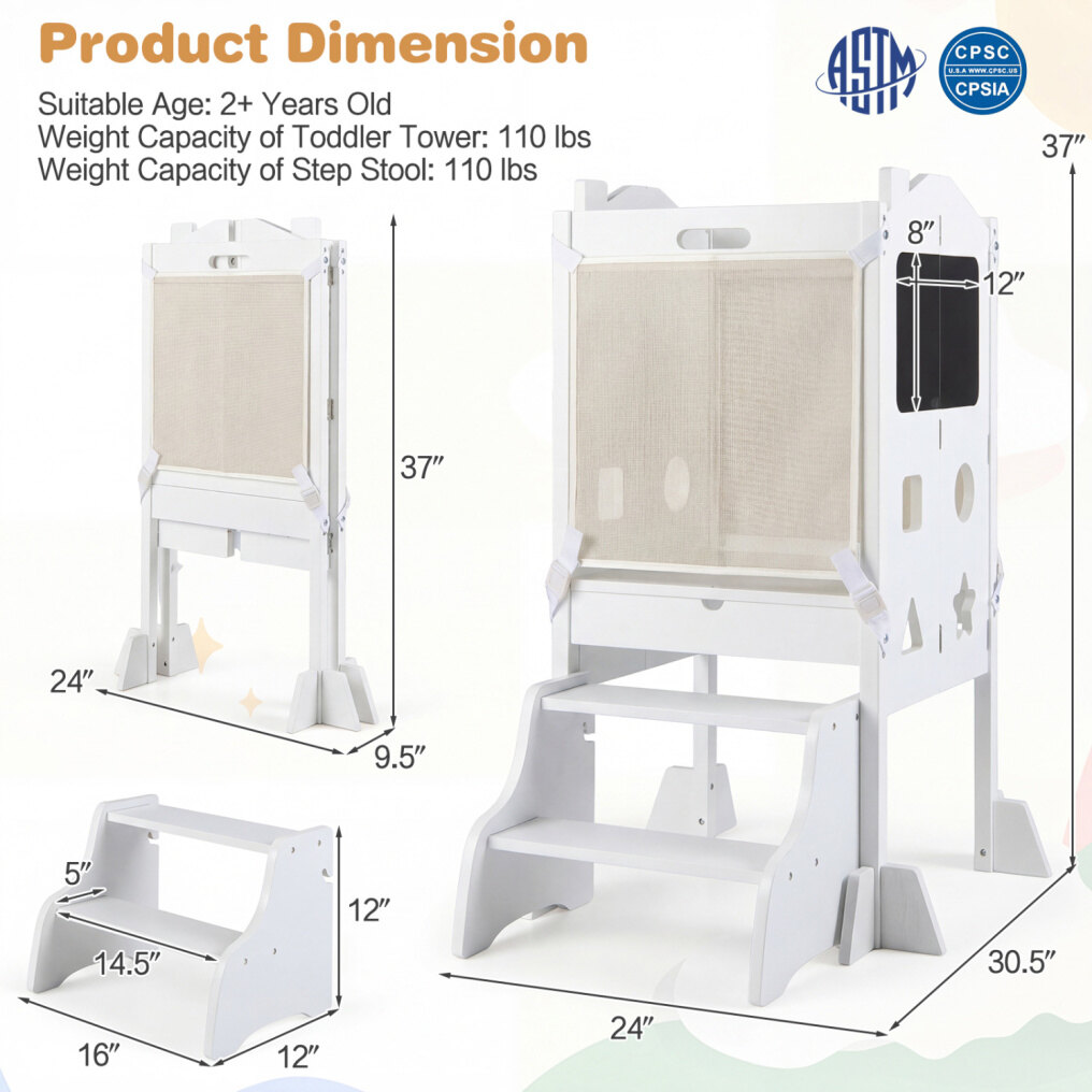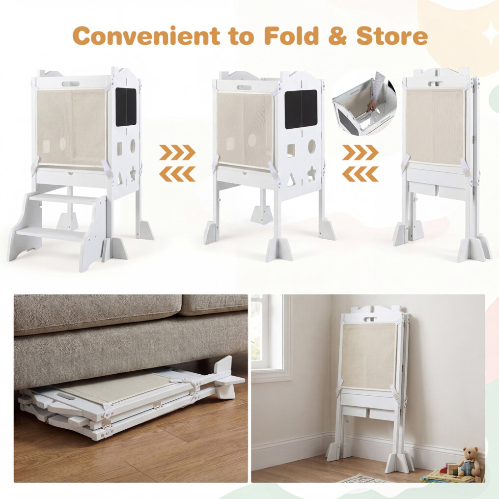 ● Convenient to Fold and Store: The toddler tower folds down neatly when not in use, making storage simple between the fridge and the wall or in a closet. The folded size is 24" x 9.5" x 37" (L x W x H), which won't take up too much floor space.