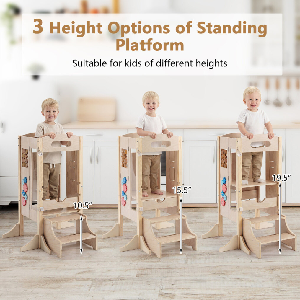 ● 3 Height Options of Standing Platform: The height of standing platform can be adjusted in 3 positions (10.5", 15.5", 19.5"), making it suitable for kids of different ages. Adjustable height offers safe access to sinks, kitchen counters, or tables.