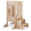 ● Versatile Helper for Growing Kids: Seamlessly transformed between a standing tower, a toddler tower with step stool, an easel desk with stool and a 2-step stool, this multipurpose set adapts to your child's growing needs.