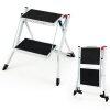 With anti-slip pedal and foot pads, you can climb up to the higher spot and get things safely. Designed with both practicality and safety in mind. This versatile 2 stepladder also can be used as a stool for small pets and kids. Constructed of sturdy metal frame with rustproof finish, the step ladder features high stability and can be used for a long time. The stable X-shaped structure and reinforced cross bar ensure high-level safety when you stand on the ladder. And you can fold it into a compact size for space-saving after finishing using it. Besides, its light weight and portable handle design allows you to carry it with ease.