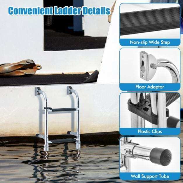 Stable Design: Designed to provide exceptional stability and prevent slips, this boat ladder features sturdy PVC steps that guarantees safe use in water adventures. Moreover, the floor adaptor and wall support tube work together to provide a sturdy using experience.