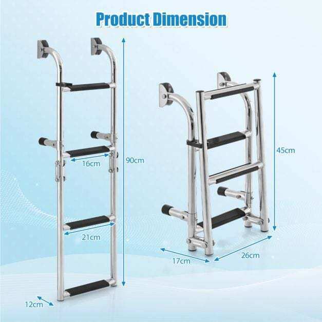 Enjoy easy access to your pool and invest in this reliable and practical pool ladder! Introducing the folding ladder, a versatile and reliable accessory for swimming pool, dock or boat. Featuring a foldable design, this ladder is easy to transport or store when not in use, the plastic claps also helps to keep the structure more stable. Moreover, the high-quality stainless steel materials ensure durability and stability during use. In addition, the non-slip PVC steps and secure mounting ensure stability, minimizing the risk of accidents or slips, enhancing safety for users of all ages. Don't compromise on quality when it comes to your pool accessories. Choose the Folding Pool Ladder for its durability, convenience, and stylish design!