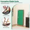 Easy Folding Design: The pool game table is designed with an easy folding mechanism that allows you to fold and store it in a compact size, saving valuable room space. Simply push the bar and fold the legs effortlessly for convenient storage.