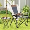 ● Thoughtful Detail: Fitted with a cup holder on the side of this chair which is convenient to place your drink or cup during camping. What's more, four non-slip foot pads can ensure the stability of the lawn chair, and the wrapped armrests provide support for your arms.