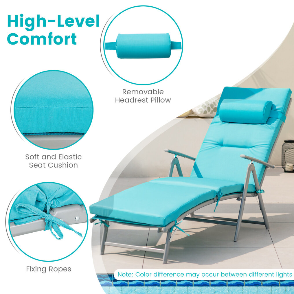 ● Quick-Folding Design: When you finish lounging or relaxing, the patio recliner can be quickly folded after the cushion and pillow are removed. The compact folding size makes it easy to carry and space-saving to store, bringing much convenience to you.