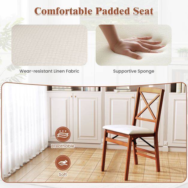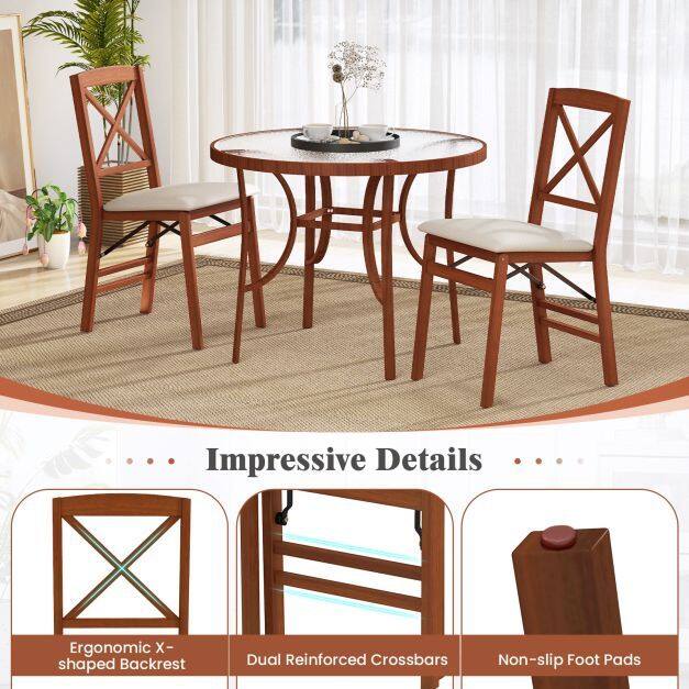 ● Ready-to-use Convenience: Our rubber wood chair comes fully assembled and ready to use straight out of the box, saving you valuable time and effort. Each folding dinette chair measures 22" x 17" x 34.5"(L x W x H), with a comfortable seat height of 19".