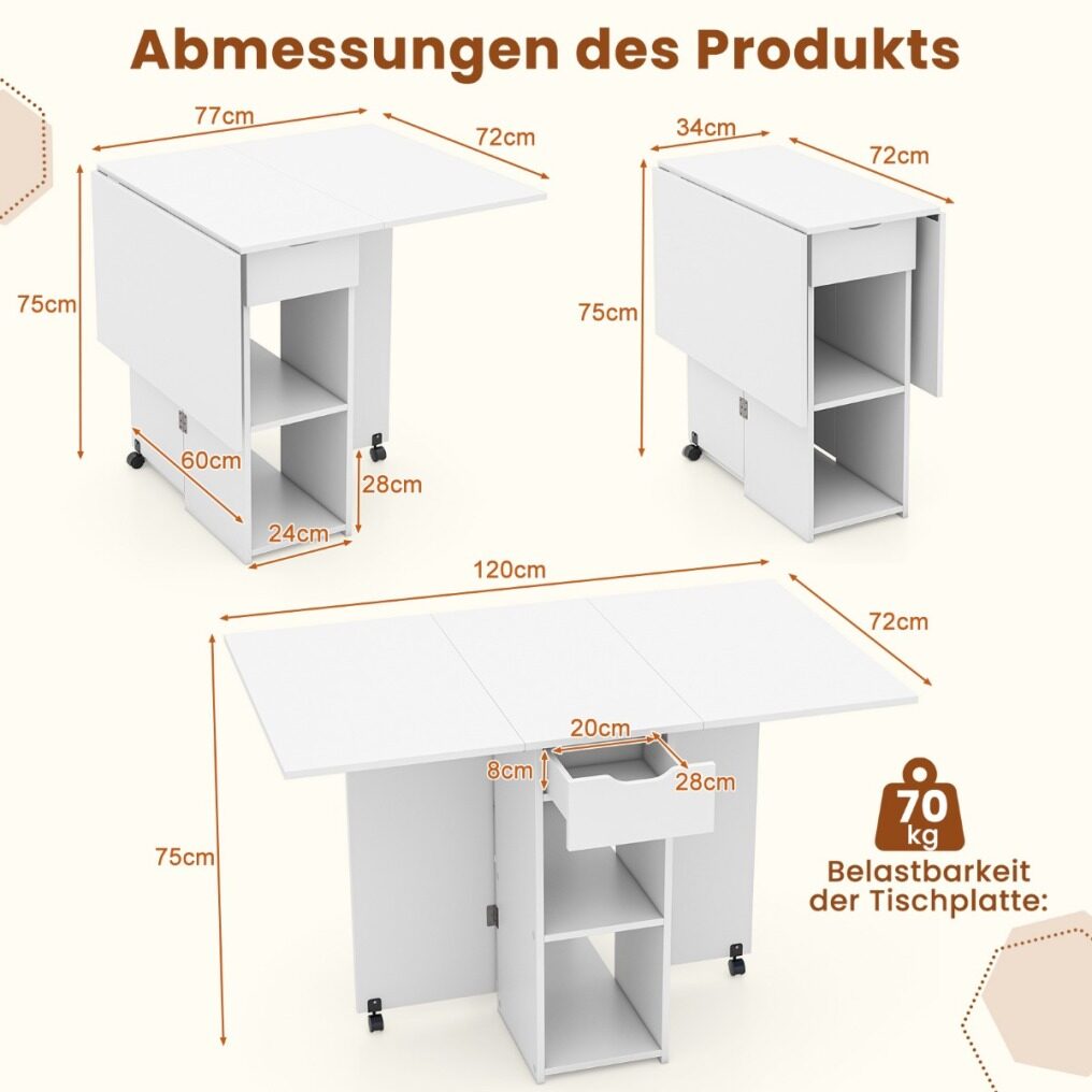 This kitchen table is designed to make the most of limited space. When not in use, it can be folded up completely and placed in a corner, reducing its footprint to a minimum. Besides, this kitchen table can be folded and extended to suit a variety of needs. When entertaining guests, it can be fully extended to accommodate multiple people. It can be utilized as an office desk or console table when folded. The modern table has 2 storage shelves and a drawer underneath that can hold kitchen supplies, books and other office supplies or needlework crafts. It can be cleaned easily and can be wiped down with a damp cloth. This versatile piece of furniture can be used as a computer desk, writing desk, laptop, workstation, corner table, wall table, hence, it is perfect for your living room, study, dining room. If you are looking for a kitchen table like this, do not hesitate to place an order!