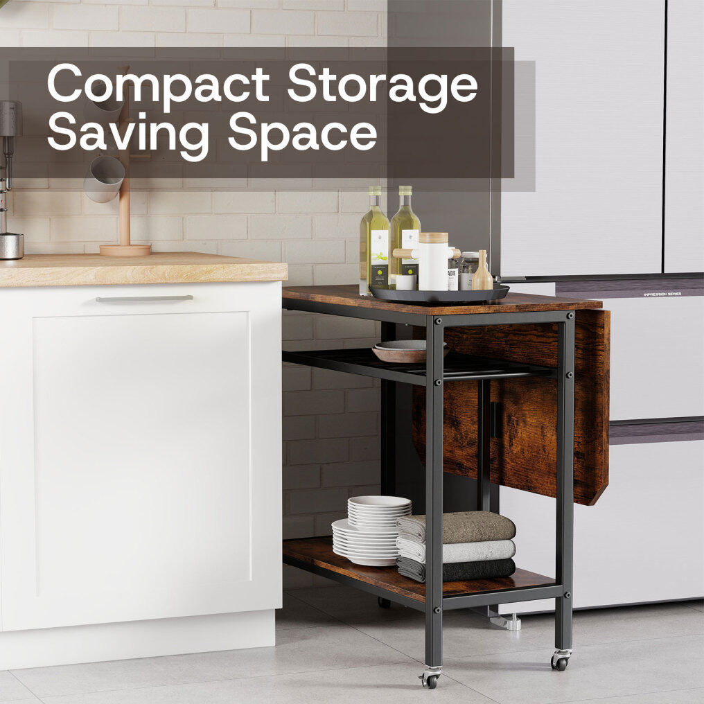 ● Versatile Usage: The drop leaf table on wheels can function as a dining table, office desk or craft station, making it perfect for various spaces. Moreover, its rustic brown and black colors add an industrial charm to your home decorations.