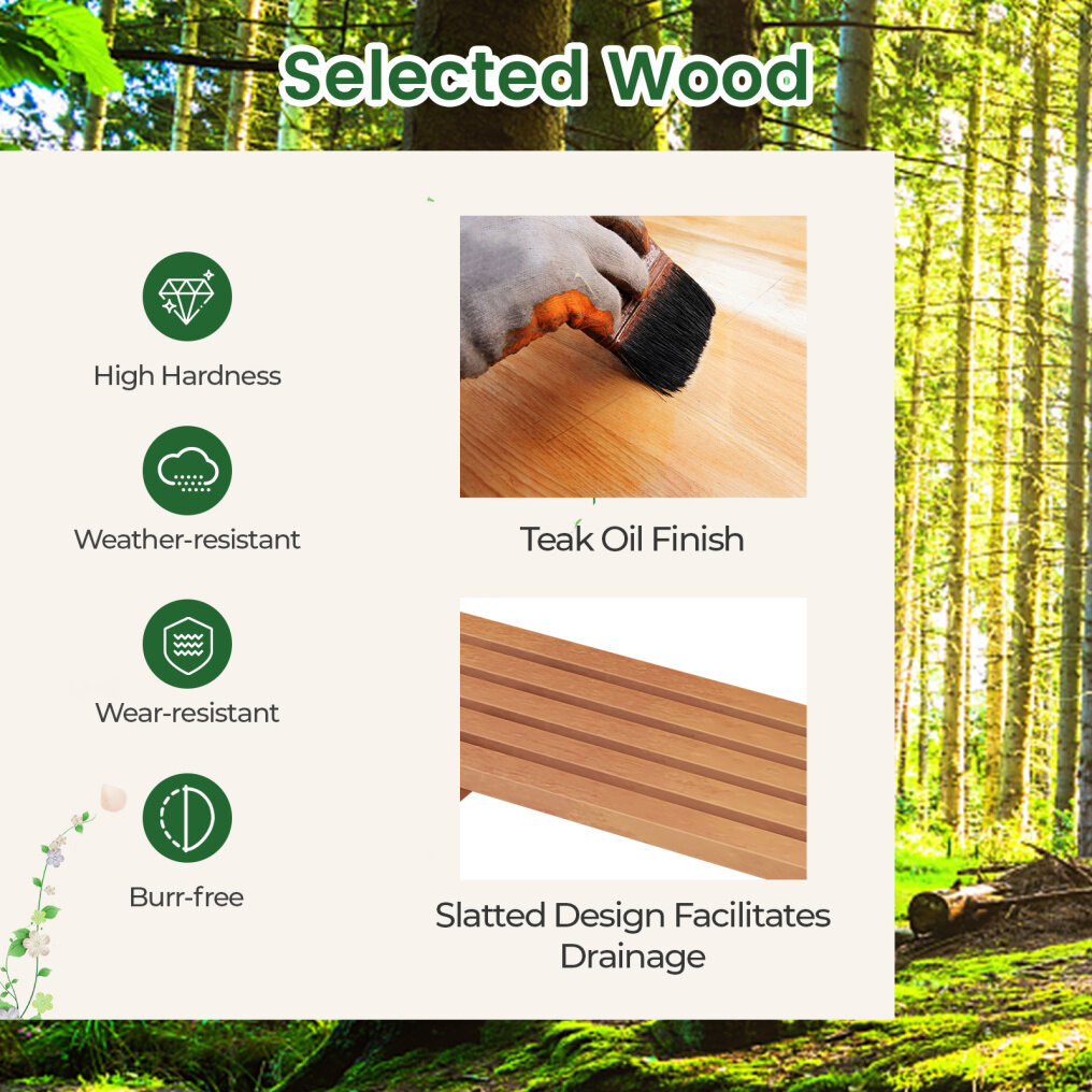 ● Weather-resistant Construction: Made of high quality shorea hardwood, the wood gardening workstation ensures durability and resistance to wear. Moreover, the bench is further protected with teak oil finish, making it weather-resistant for longer outdoor use.