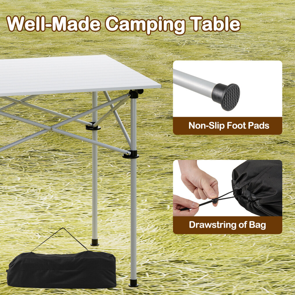 ● Travel-Friendly Design: This folding camping table features a collapsible and foldable structure and weighs only 8 lbs for added convenience. Moreover, the carrying bag included allows for effortless transportation and storage.