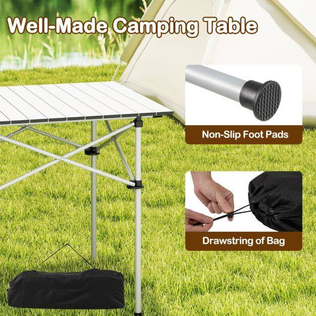 ● Quick Setup Design: Featuring a convenient roll-up design and snap lock system, this collapsible camping table sets up quickly without effort. Enjoy more time relaxing outdoors instead of struggling with complicated assembly.