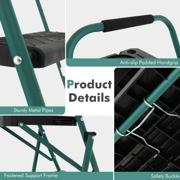 With anti-slip pedals, handgrip and footpads, the ladder is of high-level safety, so you can use it at ease. And the heavy-duty metal structure ensures strong support and long-lasting service life. Moreover, the folding and portable design allows for space-saving storage and effortless carrying. And the tool tray on the top makes all the tools you want easy to fetch. This step ladder is also perfect as a storage shelf, satisfying your different demands.