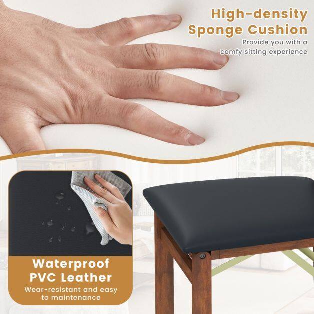 Premium Leather Upholstery: The seats of these kitchen chairs are covered with premium PVC leather, which is smooth, waterproof, and stain-resistant, making maintenance a breeze. Also, the leather surfaces enhance the aesthetic appeal of the chairs.