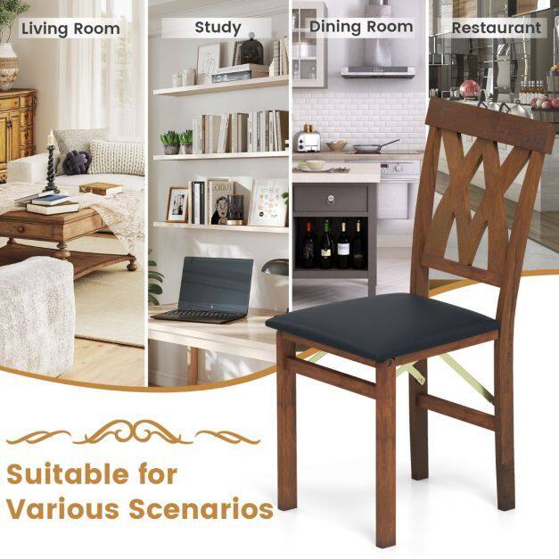 Space-Saving Foldable Design: These wooden dining chairs feature flexible hinges, allowing for effortless folding in a second, so as to lean against the wall for space-saving storage. They are ideal for use as temporary seating or perfect for small living areas.