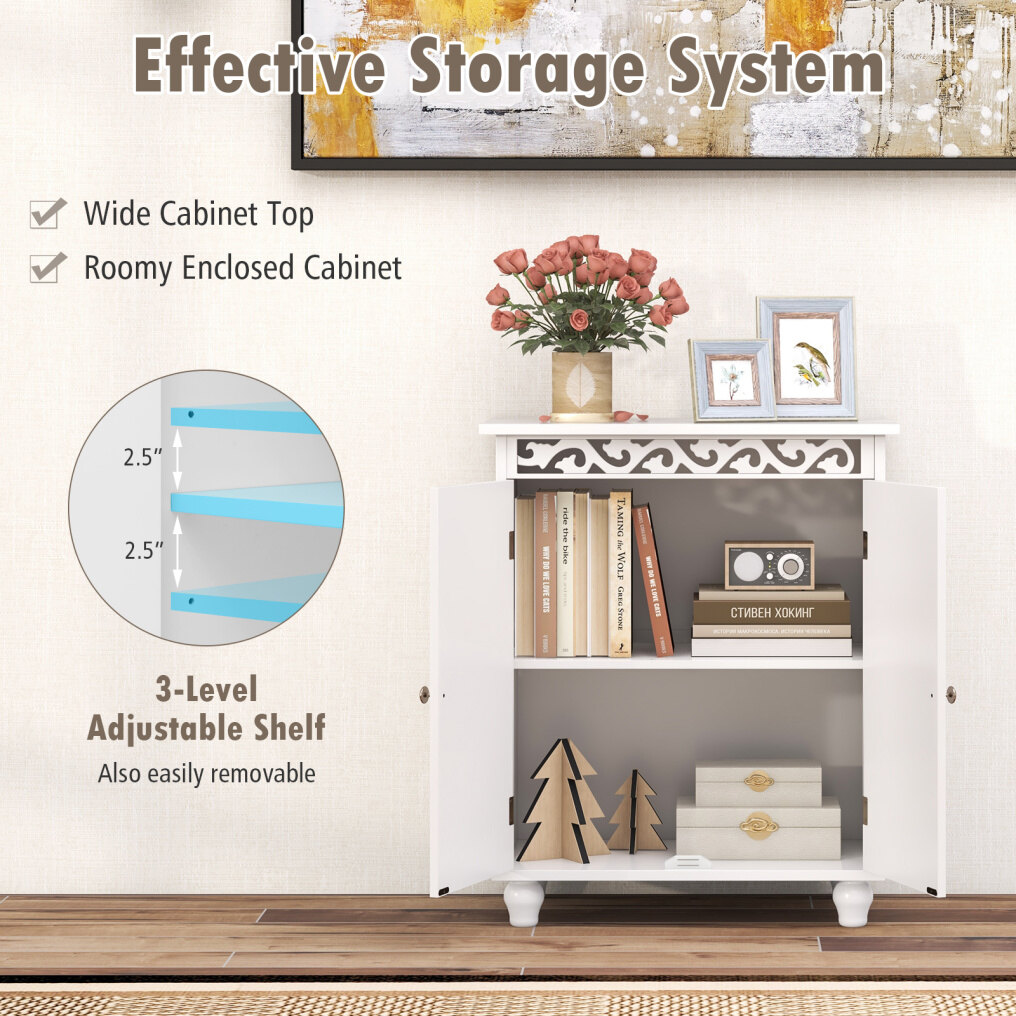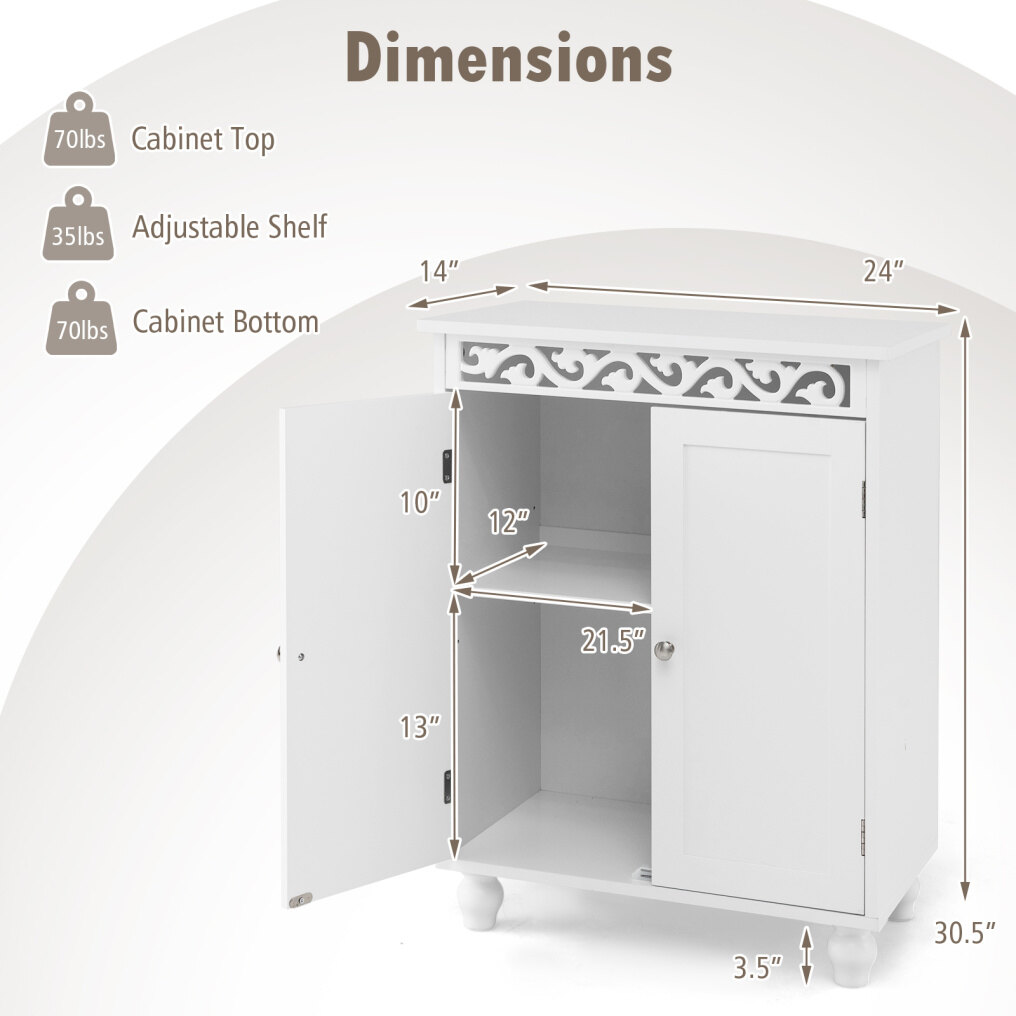● Customized Feature: The floor cabinet has a 3-level adjustable shelf, with each level offering a 2.5" adjustable spacing. Whether it's tall bottles or stacks of towels, easily configure the space inside to accommodate items of varying sizes.