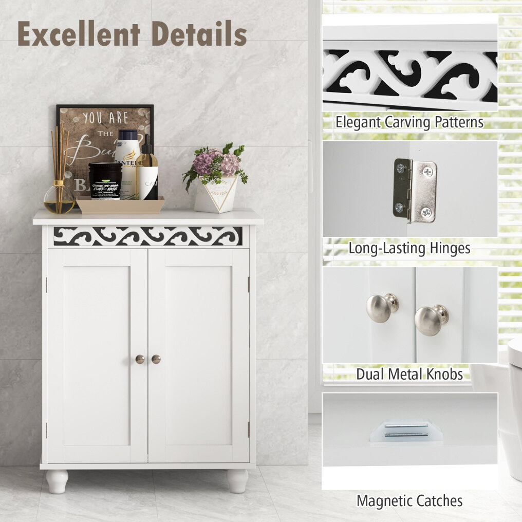 ● Artful Craftsmanship: Elevate your bathroom's aesthetic with the storage cabinet's exquisite carving patterns that exude a classical charm. Not just a storage solution, this piece is a testament to exquisite design, adding timeless beauty to your space.