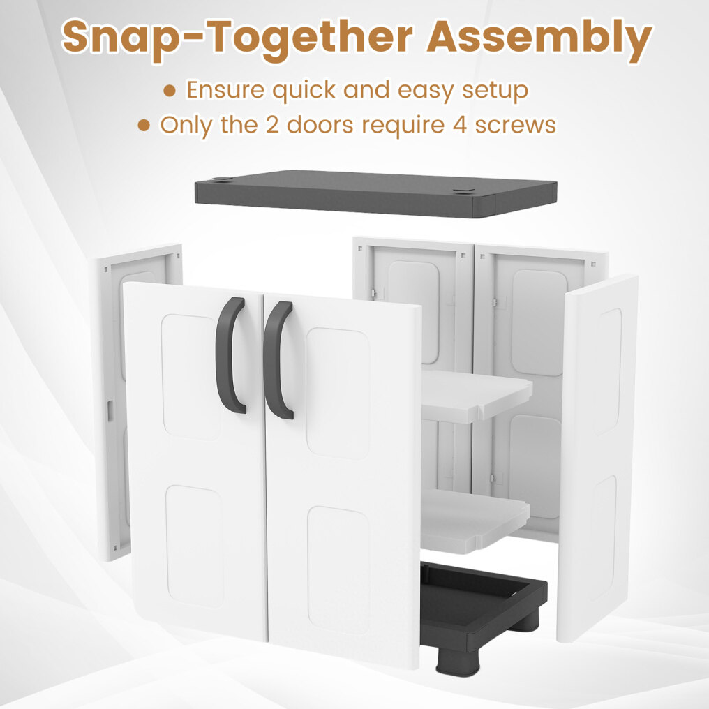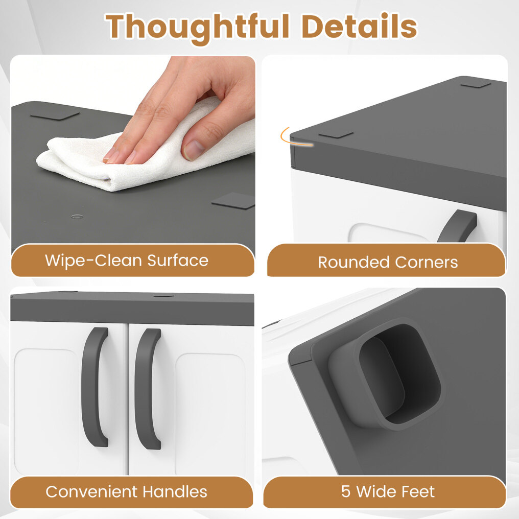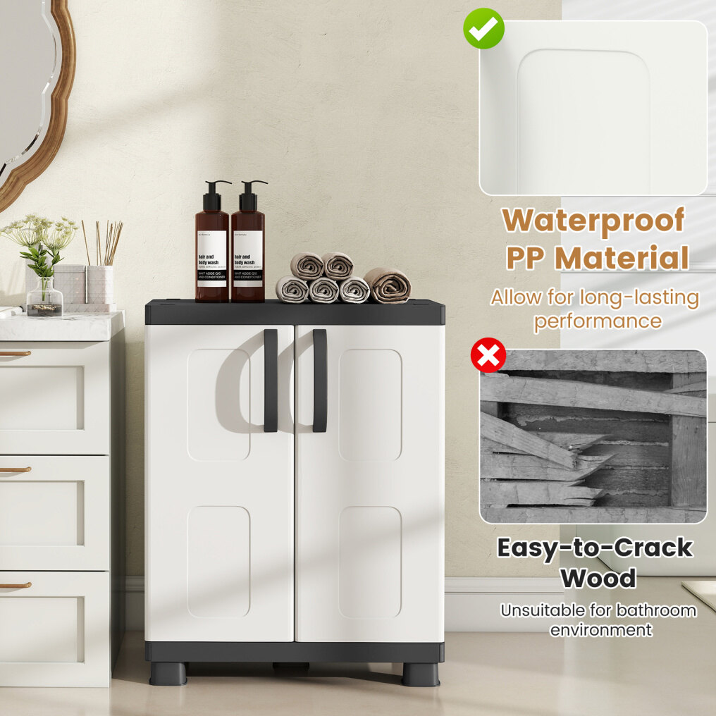 ● Waterproof Plastic Build: Crafted from high-quality and waterproof PP material, the plastic utility cabinet solves the problem of traditional wooden furniture warping. Additionally, the smooth surface allows for easy wipe cleaning.