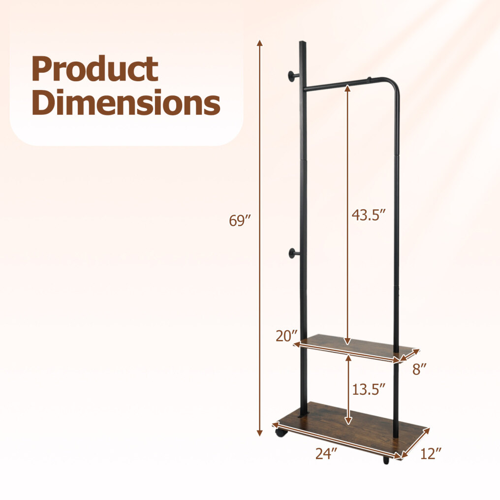 ● Industrial Metal Frame: The sturdy metal frame of this rolling hall tree provides exceptional support and resilience. Moreover, the industrial appearance infuses your space with a touch of sophistication.