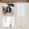 The hinged lid features a built-in mirror so you can try on your jewelry and create stunning looks. Open the lid to reveal four compartments, ideal for storing rings, bracelets, earrings and other small accessories. All your things can be well stored and organized. Additionally, the side doors are equipped with anti-swing ropes to prevent accidental damage to your necklaces. The jewelry box chest is designed with an anti-tip strap on the back to prevent any accidental falls. The solid wooden legs with non-slip foot pads ensure high stability while protecting your floor.
