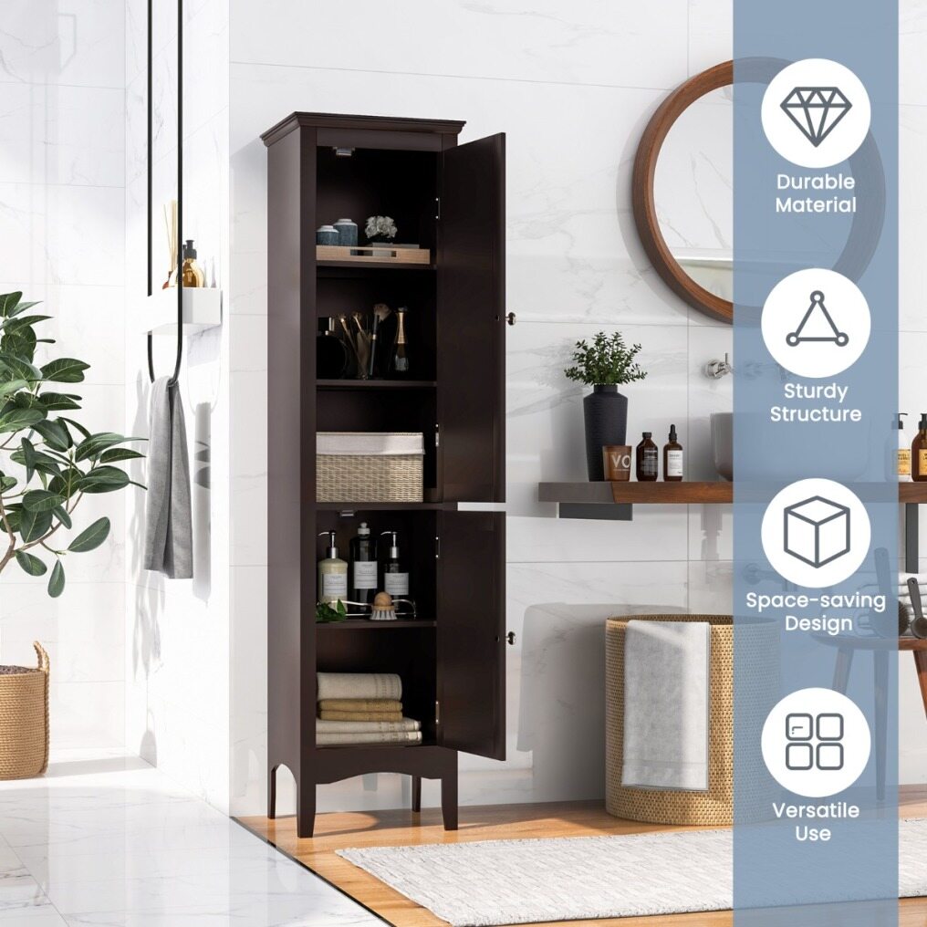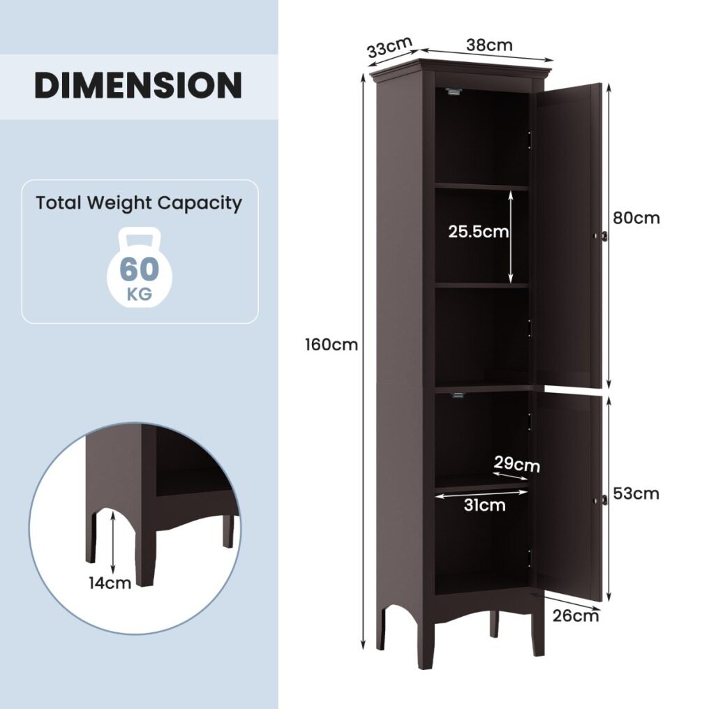 ● Safety Is Non-negotiable: This tall narrow bathroom storage cabinet is equipped with an anti-toppling device, which helps attach the product to the wall tightly. Thus, you do not need to worry a lot about the safety of your naughty kids and pets.
