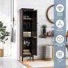 ● Premium Material and Details: Made of durable MDF, the tall narrow storage cabinet promises a longer service time. Moreover, the metal knobs and the 180° open metal hinge, allow you to push or pull the doors easily. As for daily maintenance, the smooth surface can be wiped easily with a soft rag.