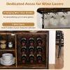Special areas for wine lovers: Combining easy access with elegant design, this wine cabinet features three built-in wine racks that securely hold nine bottles of your prized wine collection. Additionally, there are three hanging glass holders that can hold up to six glasses.