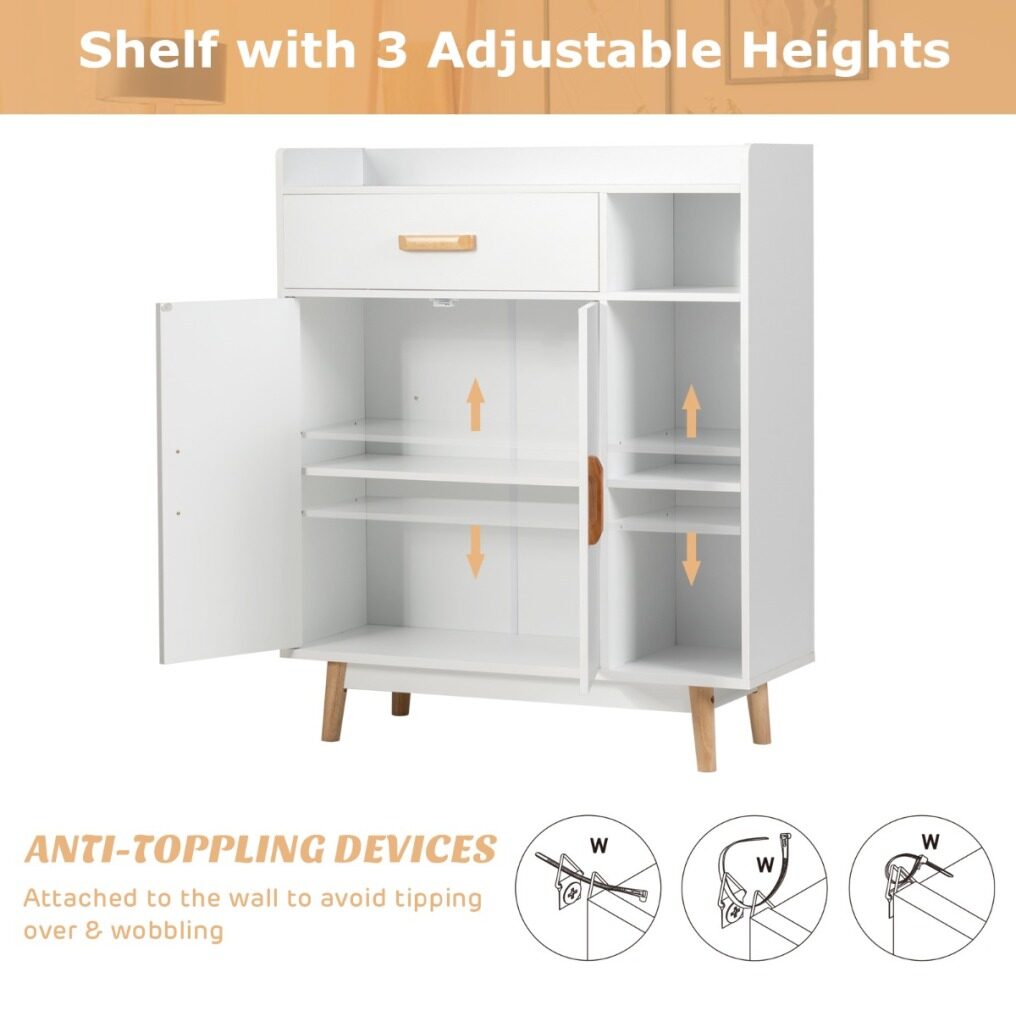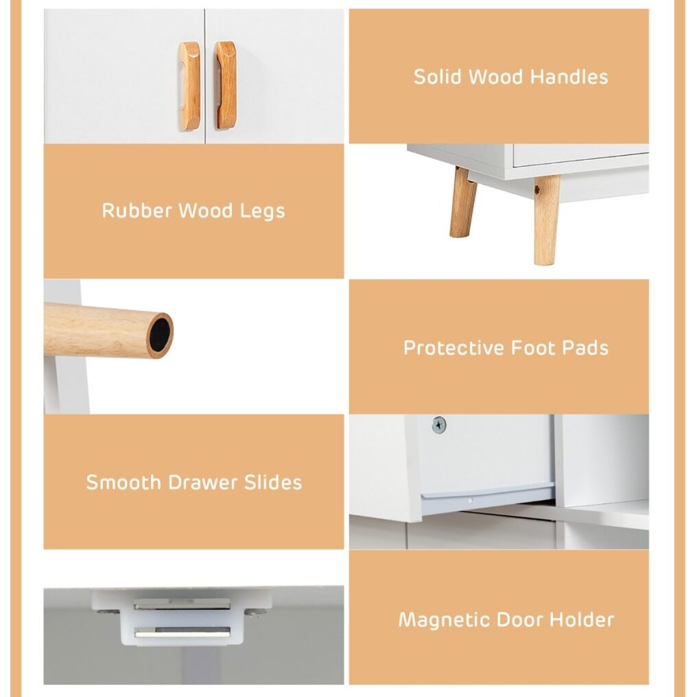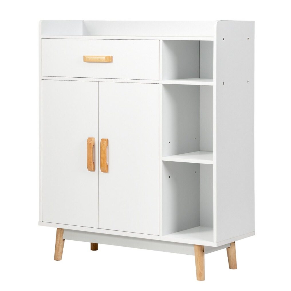 Versatile Storage Space: The storage cabinet offers you enough storage space with a large tabletop, a drawer, 3 compartments and a 2-door cabinet. To the left, right and back of the surface, there is a table bezel that prevents your items from falling down.