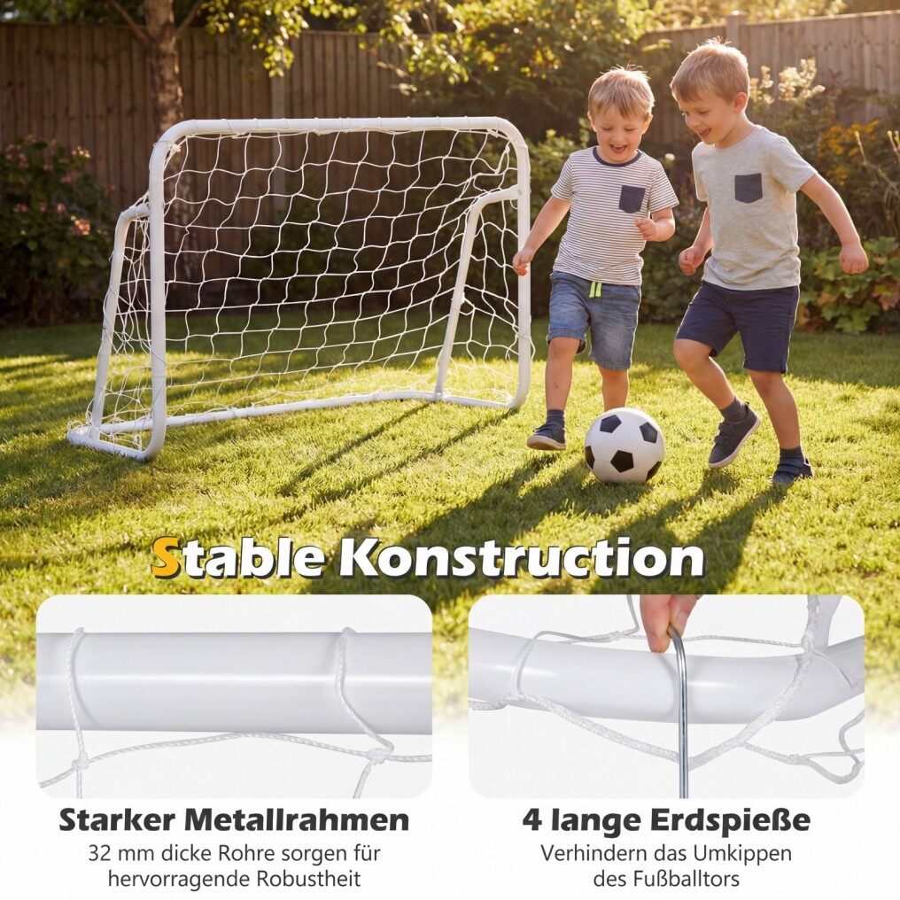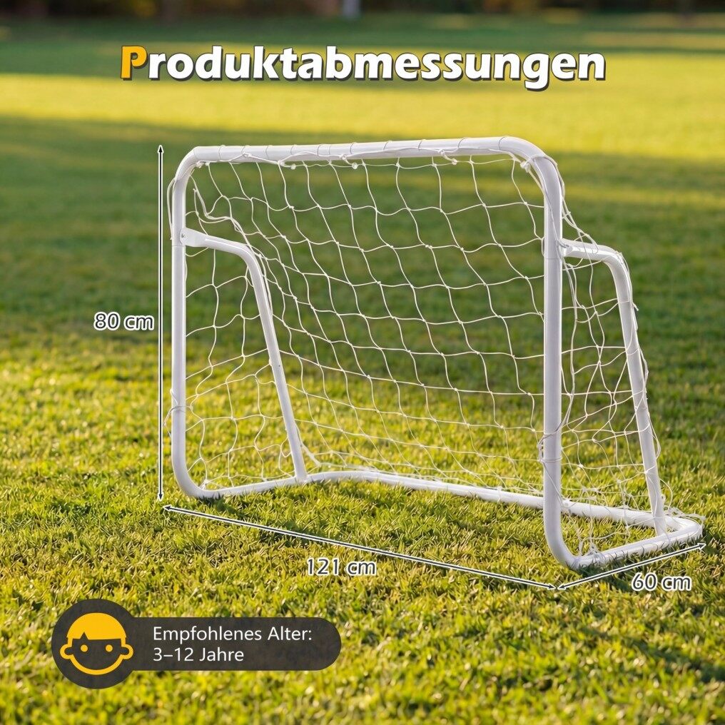 Suitable for children and teenagers: Measuring 121 x 60 x 80 cm (L x W x H), this mini metal football goal fits perfectly into smaller spaces and transforms any garden, garage, or park into a child-friendly playing field where future stars can practice their shooting accuracy and develop strength. Suitable for children aged 3-12 years.