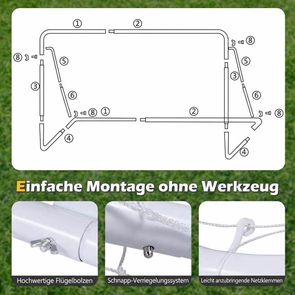 Easy assembly without tools: All parts of the football goal are clearly numbered, and the intelligent plug-in locking system with high-quality wing nuts eliminates tool problems, so the goal is ready for use quickly and without stress.