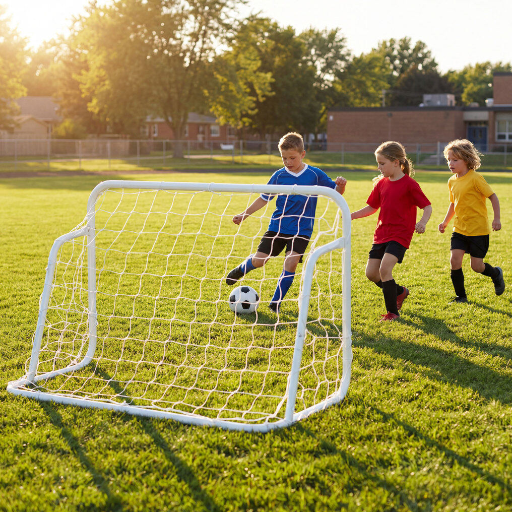 Weather-resistant PE net: The children's football goal is equipped with a high-quality PE net that easily withstands powerful shots. The sun-resistant material ensures year-round fun without fading.