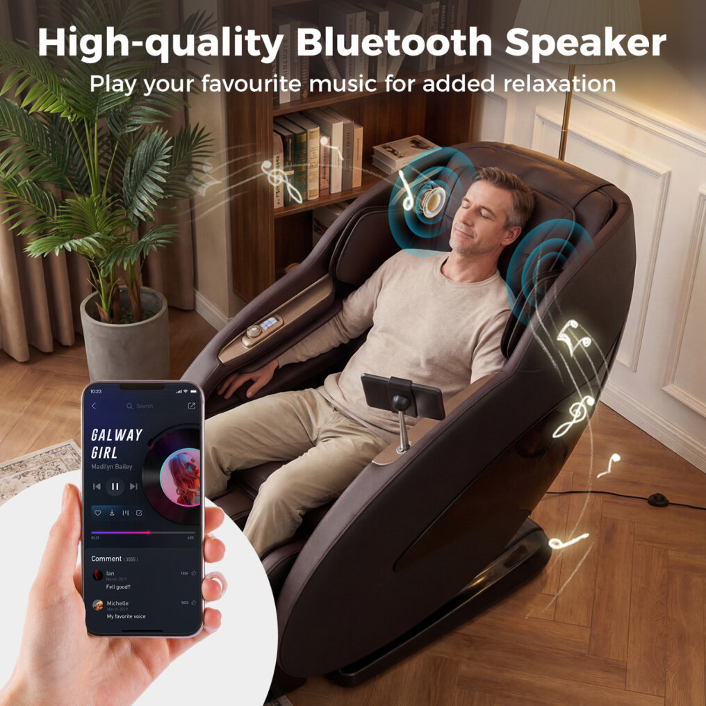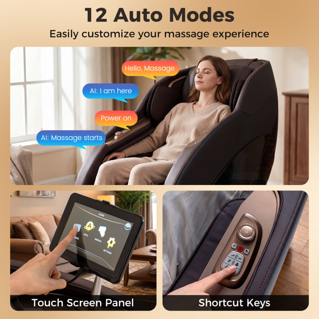 ● Smart Control & Bluetooth Speaker: Offering 3 control methods including voice control, a touch screen panel, and shortcut keys, this massage chair allows you to control all the functions effortlessly. The built-in high-quality Bluetooth speaker turns each massage into a more immersive escape with music.