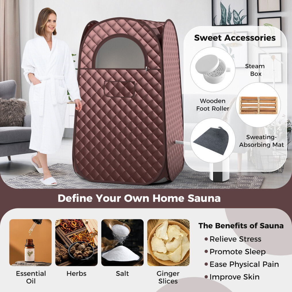 Quick Setup and Compact Storage: The pop-up sauna tent is made of metal wire spring construction, thus you can pop the tent up in one second flat. When not in use, it is easy to fold into a compact size for space-saving storage and convenient transportation.